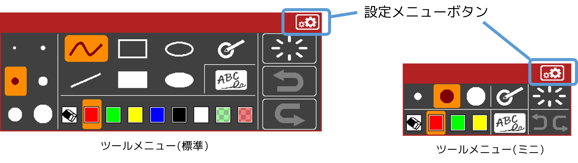 マーキングメニューの設定ボタンを押すと各種設定を行う設定メニューが表示されます。