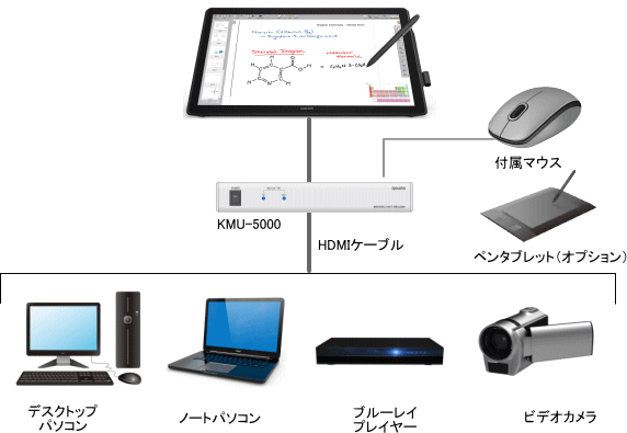 様々なデジタル機器の映像に描画ができるハードウェア方式デジタルマーキングユニットKMU-5000はパソコン、ブルーレイプレーヤー、ビデオカメラなど、様々なデジタル機器の出力映像に描画することができます。会議、講演会、セミナーなどのプレゼンテーションツールに最適です。 ![]() HDCP(デジタル著作権保護)対応で、映画やデジタル教材などのコンテンツにも描画することができます。 |